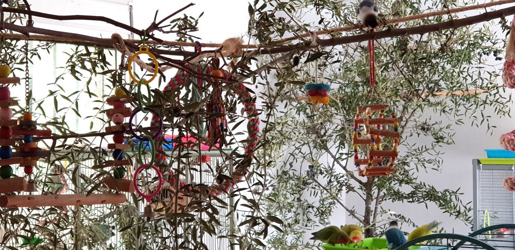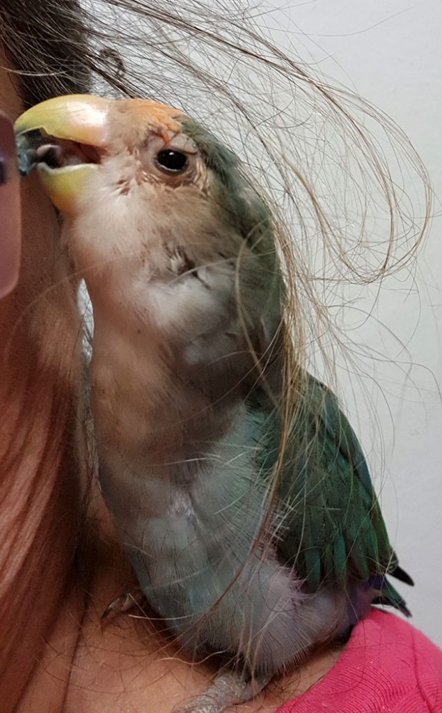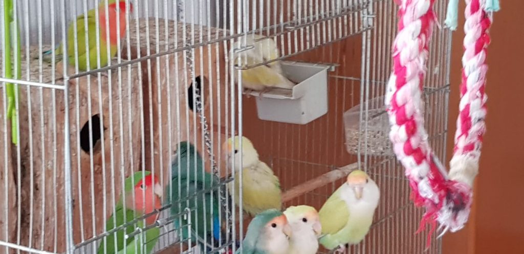 Fue cedida junto a su familia al completo: 11 agapornis en una jaula, así llegaron.