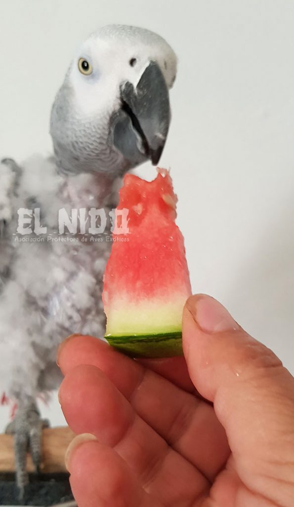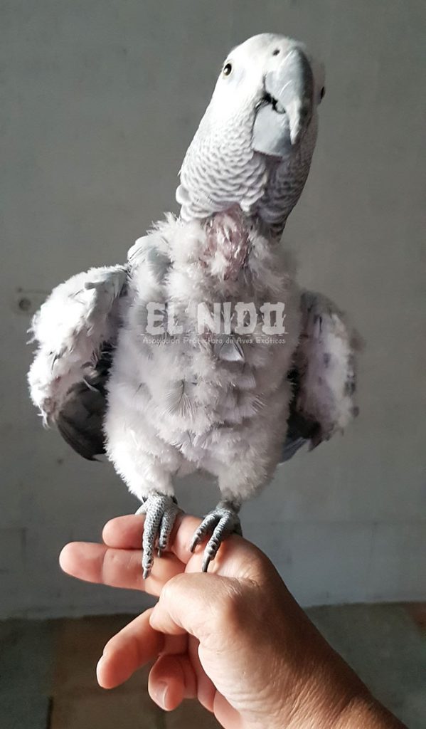 Al llegar a nosotros, volvió a recuperar la alegría y dejó de arrancarse las plumas.