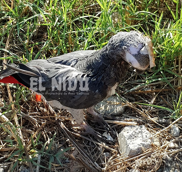 Cuando ya estaba completamente recuperado del picaje, le diagnosticaron un tumor; fue visto por varios veterinarios, uno en nuestra misma localidad, se le realizó una biopsia y nos aconsejó que lo lleváramos a Madrid, que ellos tenían más experiencia en tumores. Lo llevamos a Madrid, donde estuvo ingresado más de un mes, se le sometió a varias cirugías para intentar limpiar toda la zona afectada del tumor, le tuvieron que extirpar un ojo y parte del hueso de la mandíbula, por lo que no podía abrir el pico en su totalidad para alimentarse.