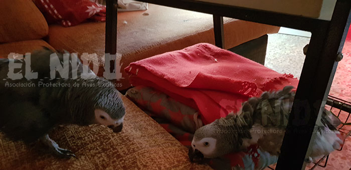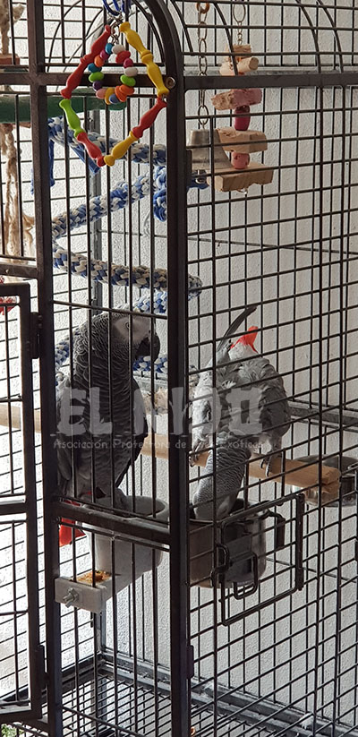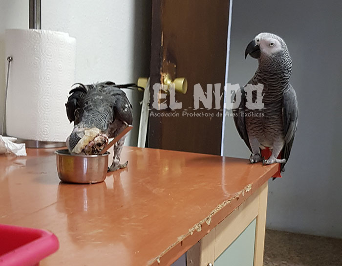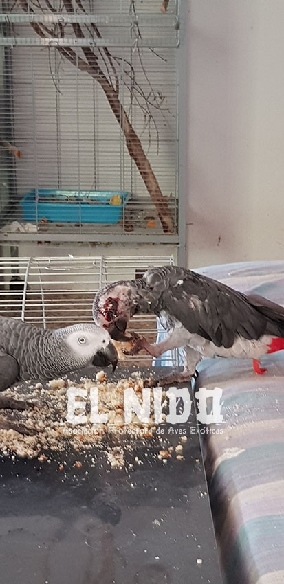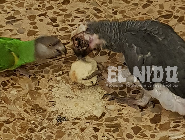 Cuando terminó la cuarentena y después de haber comprobado su carácter y socialización, fuimos introduciendo otras aves de su misma especie; no dudó en hacer buenos amigos y su picaje fue desapareciendo.