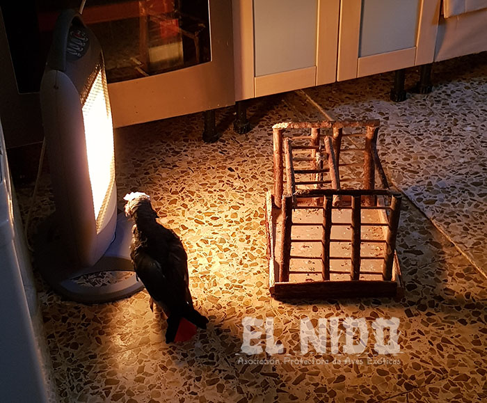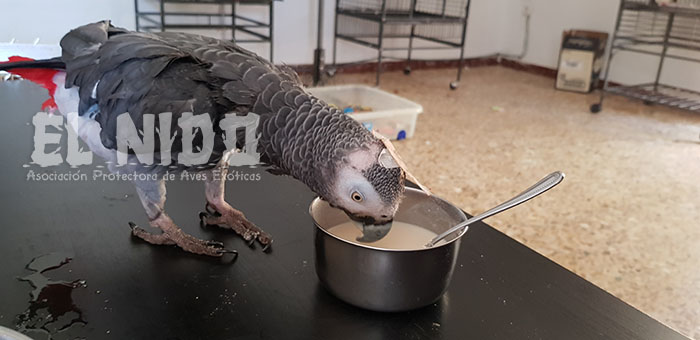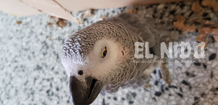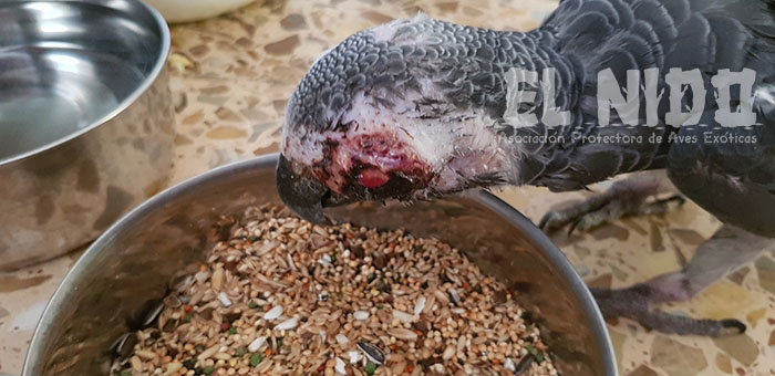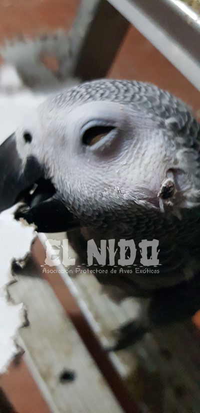 Llegó de Sevilla con bastante picaje. Su dueña estaba muy preocupada porque lo había intentado todo para el picaje, pensó que a lo mejor, al estar acompañado con otras aves de su especie, se le quitaría.