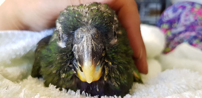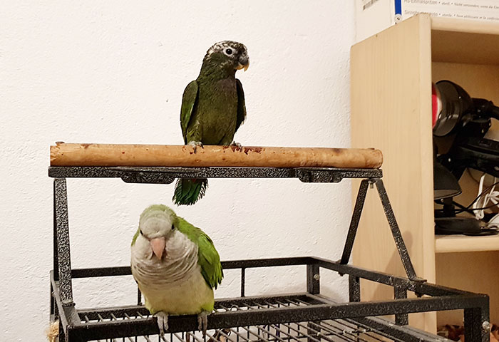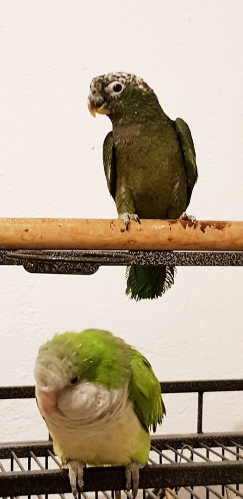 Cuando estuvo totalmente recuperado, le buscamos una familia con otro pionus que lo adoptase, y la encontramos con dos ejemplares más de pionus.