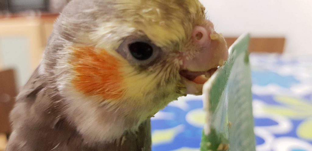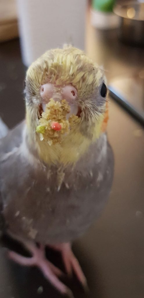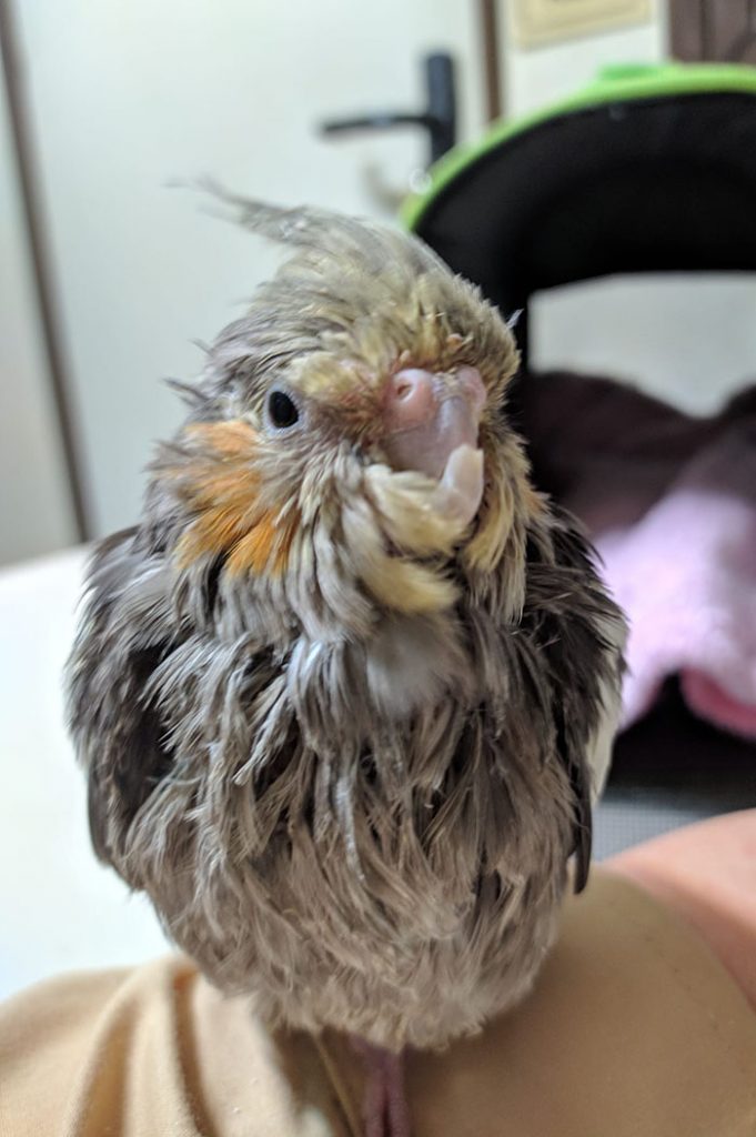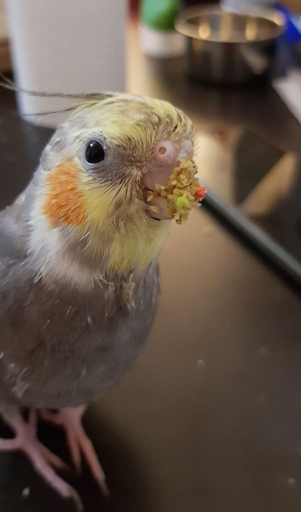 PIKY (NINFA ANCESTRAL), llego cuando era un bebe y su padre le amputo parte del pico superior, solo  se podía alimentar con sonda, estuvo ingresado en la clínica veterinaria  en varias ocasiones muy grave. Pero es todo un luchador.