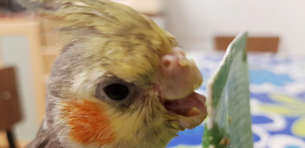 Cada 20 días aproximadamente tiene pasar por la clínica veterinaria para que le limen el pico inferior, ya que no tiene parte del superior el inferior le crece más de la cuenta.
