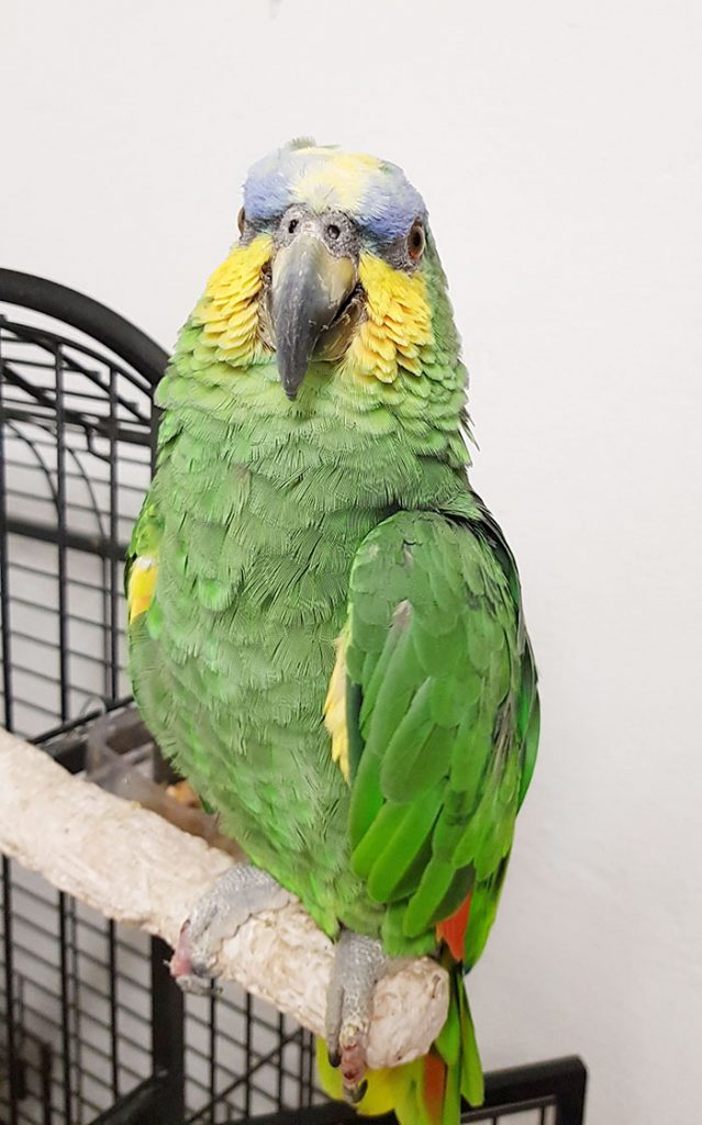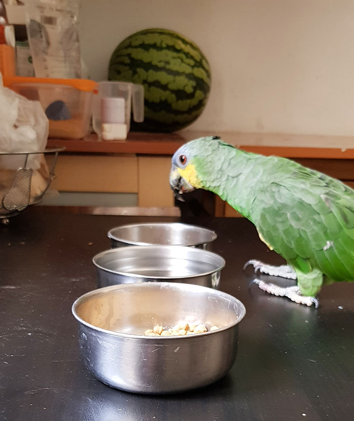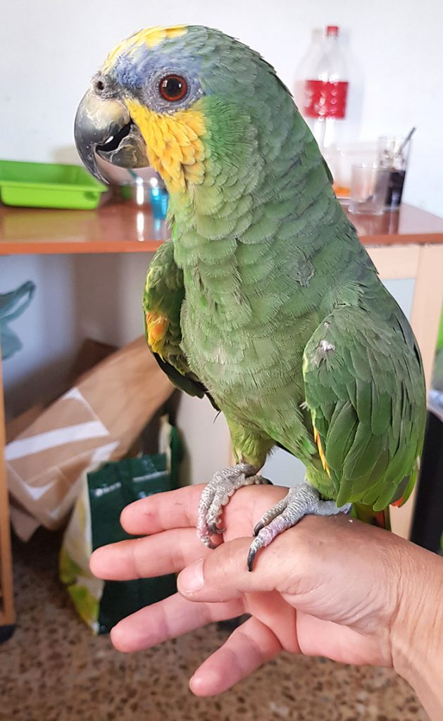 Aproximadamente 4 meses más tarde, contactó con nosotros una señora de Sevilla pidiéndonos ayuda porque su loro se le había escapado por el agujero del comedero y estaba desesperada buscándolo; en una tienda de animales le dijeron que se pusiesen en contacto con nosotros para intentar encontrarlo.